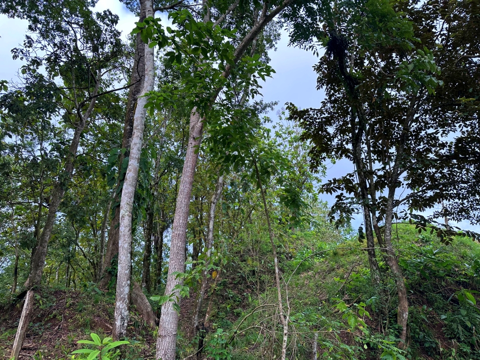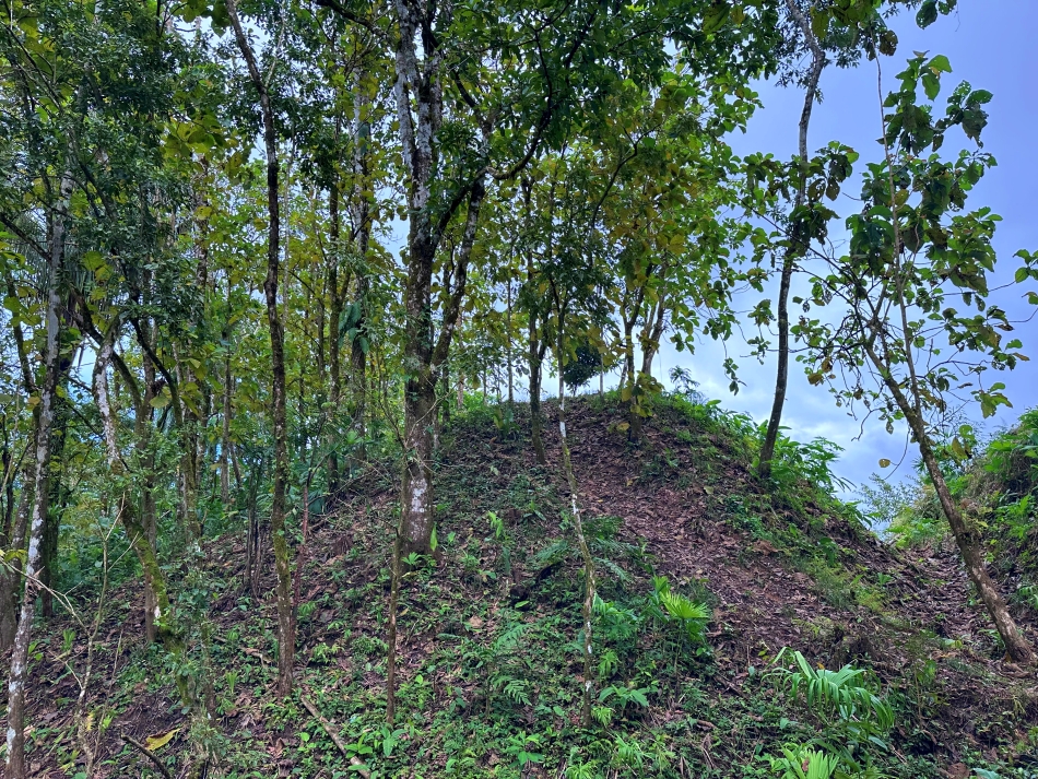 The land features a hill with breathtaking mountain views, and among the lush vegetation, a glimpse of the ocean can be discovered, like a true hidden gem. You can choose to preserve this natural charm or enhance the view by trimming some branches.