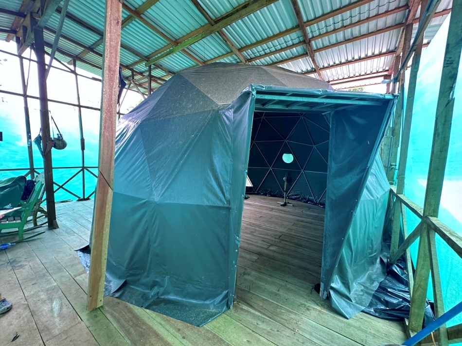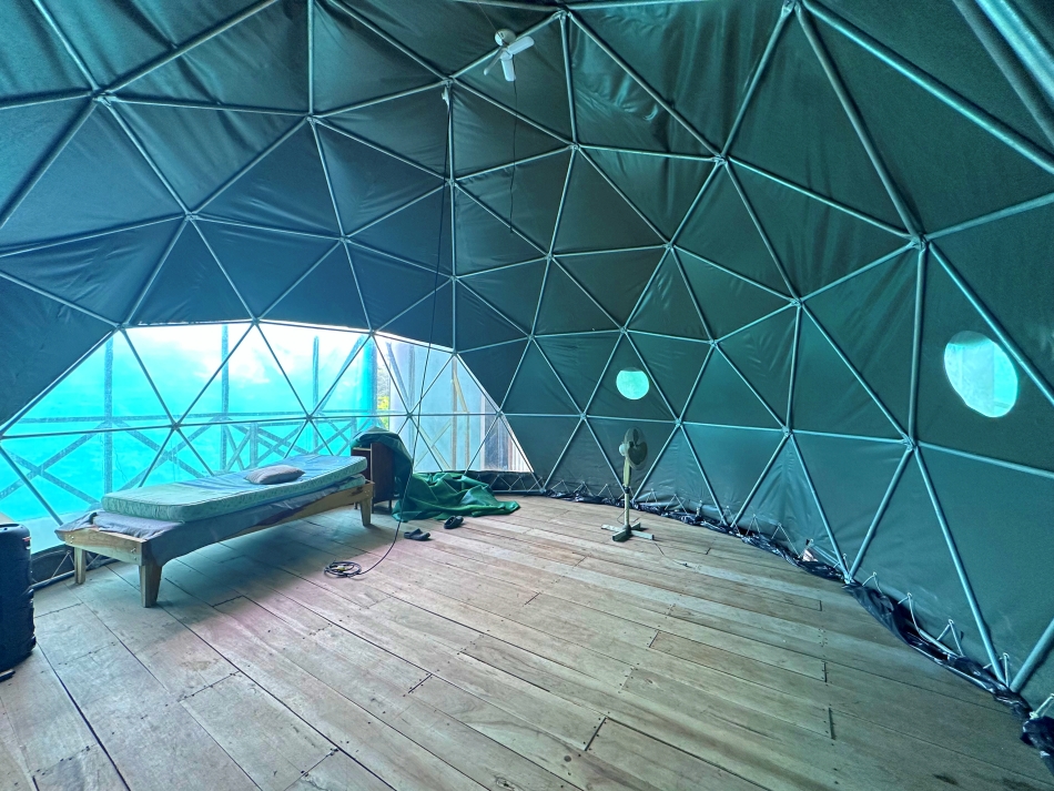 2. Second structure: Recently built, featuring two bedrooms on the ground floor and a spacious upper level. This upper area includes a dome with a private bathroom, offering unparalleled panoramic views of the Golfo Dulce.